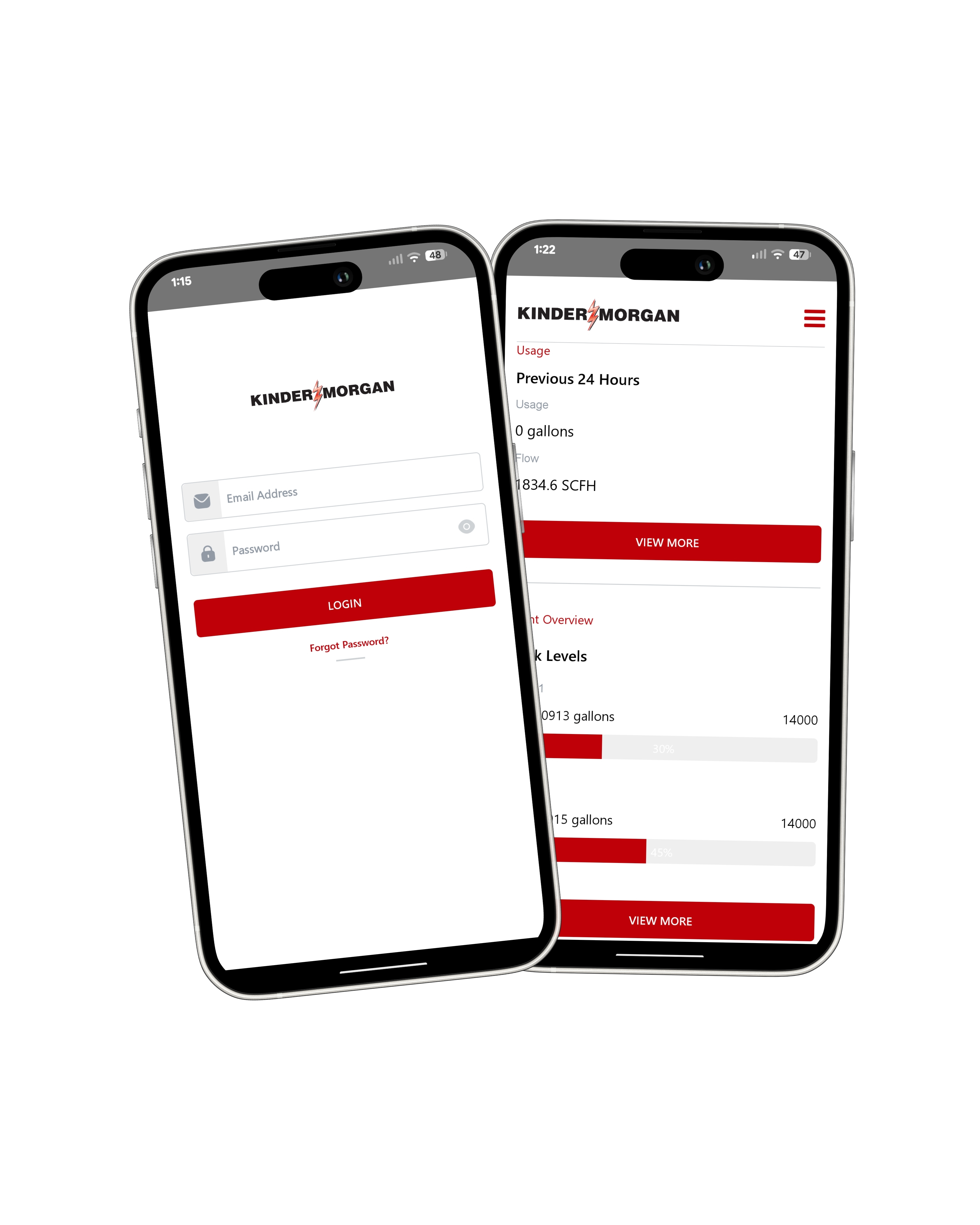 Anywhere, anytime, the Kinder Morgan mobile app provides users with an immediate view of their daily and monthly fuel usage, tank levels, delivery status with real-time tracking and push notifications, live video feeds of their LNG system and more.